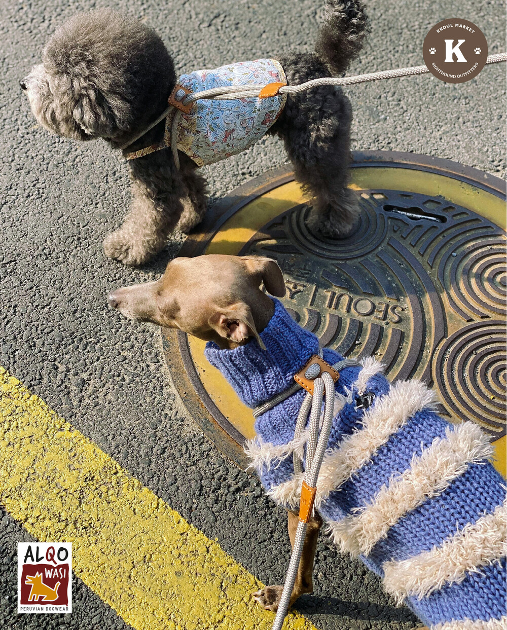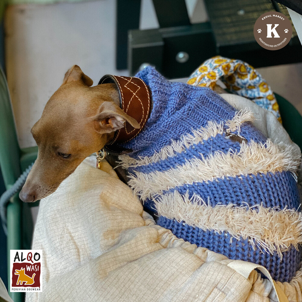 이탈리안 그레이하운드 꾸울이는 같은 디자인 블루 S를 착용했습니다.