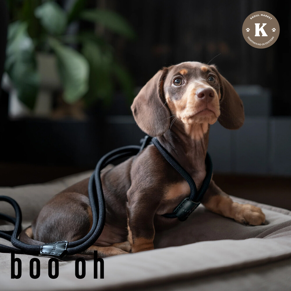 Boó Oh(부오)는 미국 시애틀의 산업 디자이너들이 만든 프리미엄 반려동물 제품 디자인 브랜드입니다. 블랙에디션 레이 하네스는 이탈리아 토스카나산 ‘Rocky’ 베지터블 태닝 가죽과 최첨단 기술로 가공된 레이온 실크 섬유 로프의 조합으로 제작된 All-in-One(일체형) 하네스 + 리드줄이며 100% 핸드메이드로 제작되었습니다. 국제 디자인 특허와 매커니즘 실용특허 출원을 받은 레이 하네스는 기능성과 스타일을 동시에 갖춘 부오만의 아이코닉 디자인입니다. 더욱 강인한 Rocky 가죽으로 업그레이된 블랙 에디션을 만나보세요.