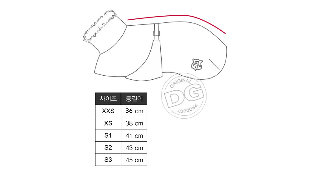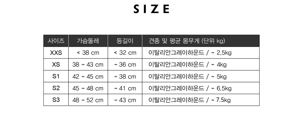 사이즈 S1 몸무게 6.8kg 가슴둘레 49cm 등길이 37.5cm