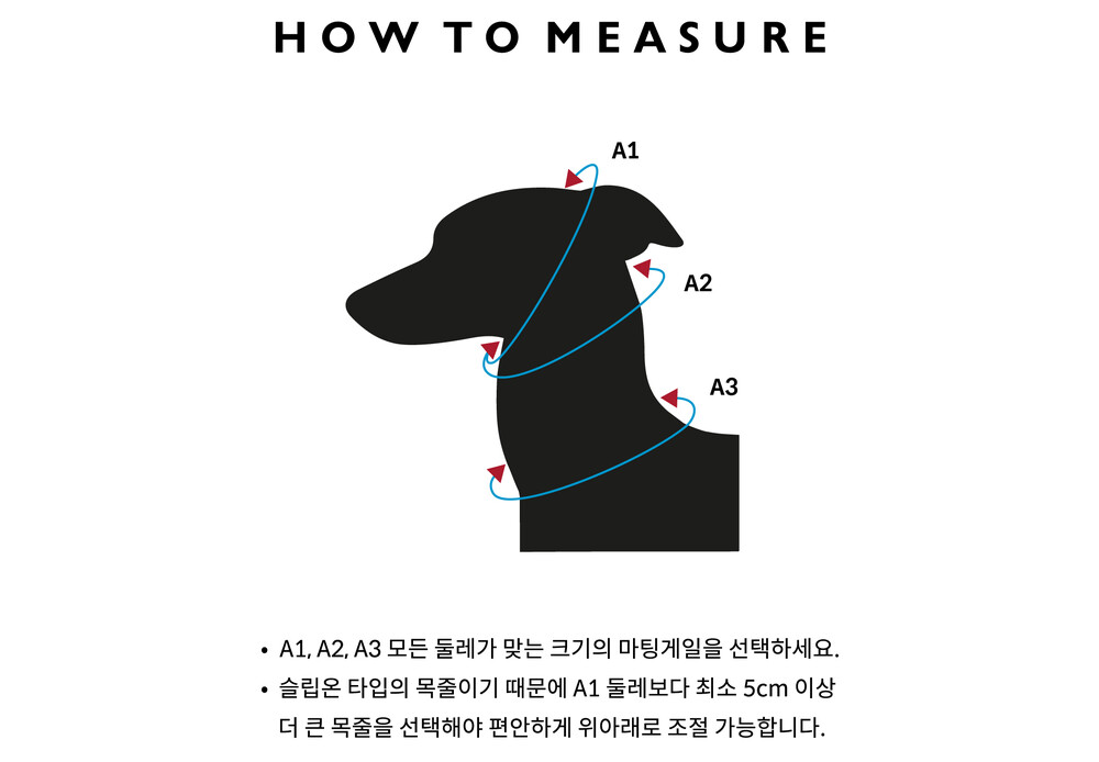 반려견의 몸무게와 목둘레에 맞는 정확한 사이즈를 착용시켜 주세요.