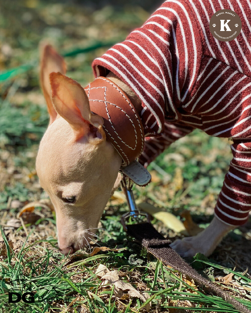 독기어 럭셔리 칼라(목줄)는 사이트하운드를 위해 특별히 고안된 제품이며 새들러(마구 용품을 만든 사람) 체코 장인이 직접 만드는 수제 목줄입니다. 새들러가 기수에 꼭 맞는 맞춤 안장을 제작하는 것처럼 세대에 걸쳐 전승된 사이트하운드 목줄 제조 노하우와 고도의 집중력으로 작업합니다.