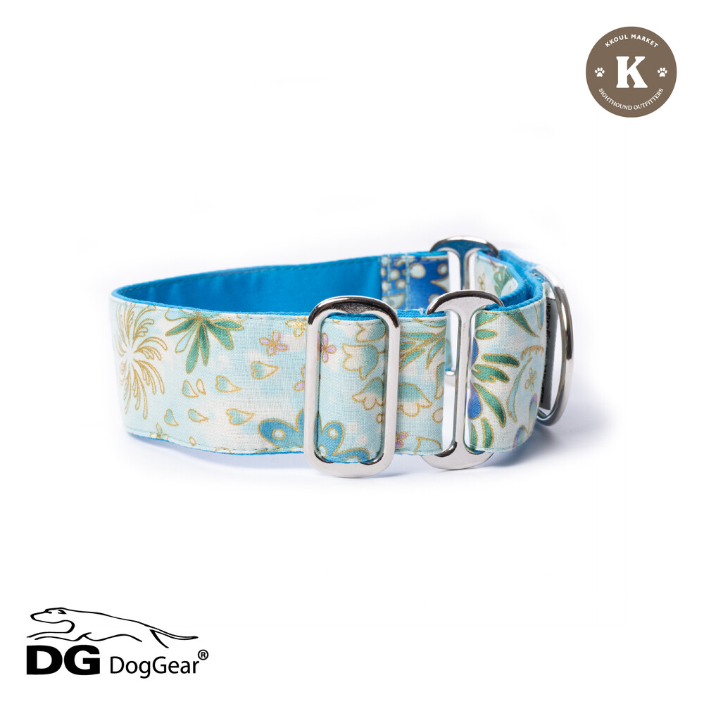 [도그기어] 터쿼이즈 크레이지 플라워즈 / 코튼 마팅게일 목줄