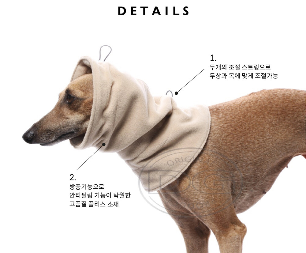 사이트하운드의 귀는 추위에 매우 민감하고 약하며 짧은 시간에도 동상에 걸릴 수 있습니다. 플리스 스누드 플러스는 바람과 추위로부터 귀와 목 부분을 따뜻하게 유지할 수 있도록 도와주며 머리와 목 부분에 달린 두 개의 조절 스트링으로 두상과 목에 맞게 조절할 수 있습니다.