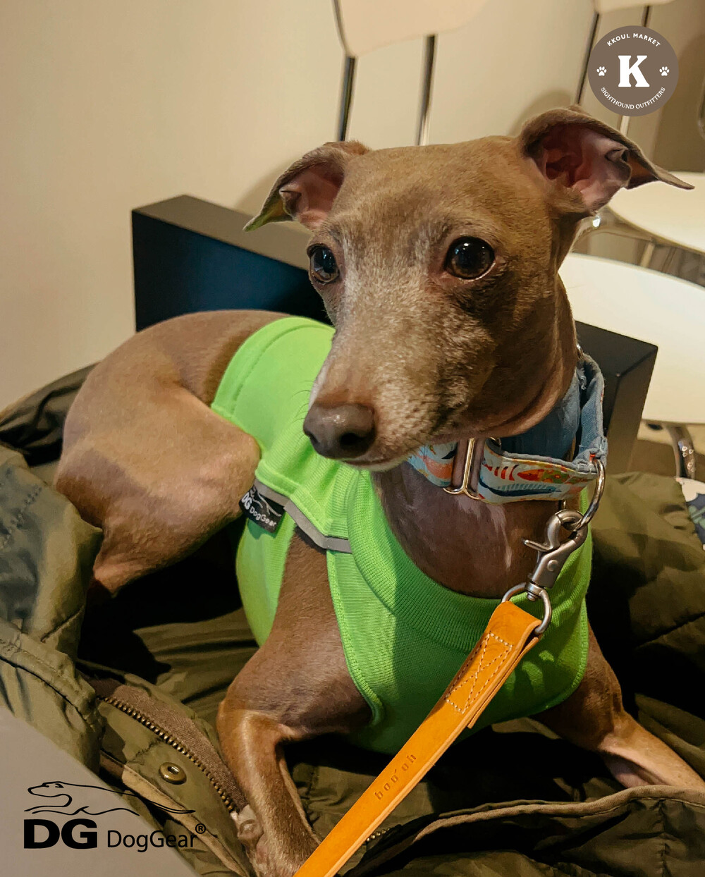 연두색 빛이 강한 네온그린 컬러이며 도그기어만의 단단하고 강력한 반사 디테일 기술이 접목되었습니다.